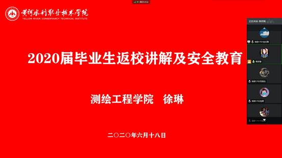 6月18日晚,徐琳老师通过线上会议的方式为2020届毕业生召开返校及安全教育班会,徐琳老师所带的298名同学全部参加。