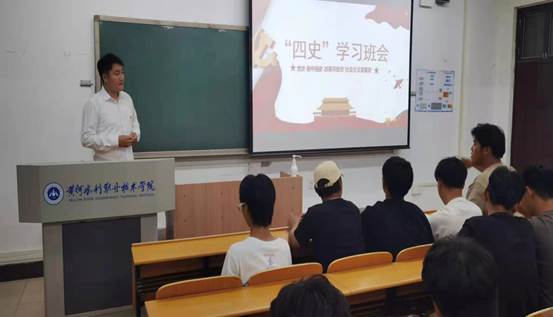 为使青年学生坚定理想信念,强化历史担当,525日,工程测量技术2001-2002班在JX3201教室召开“四史教育主题班会,班会由辅导员赵颢迪主持。