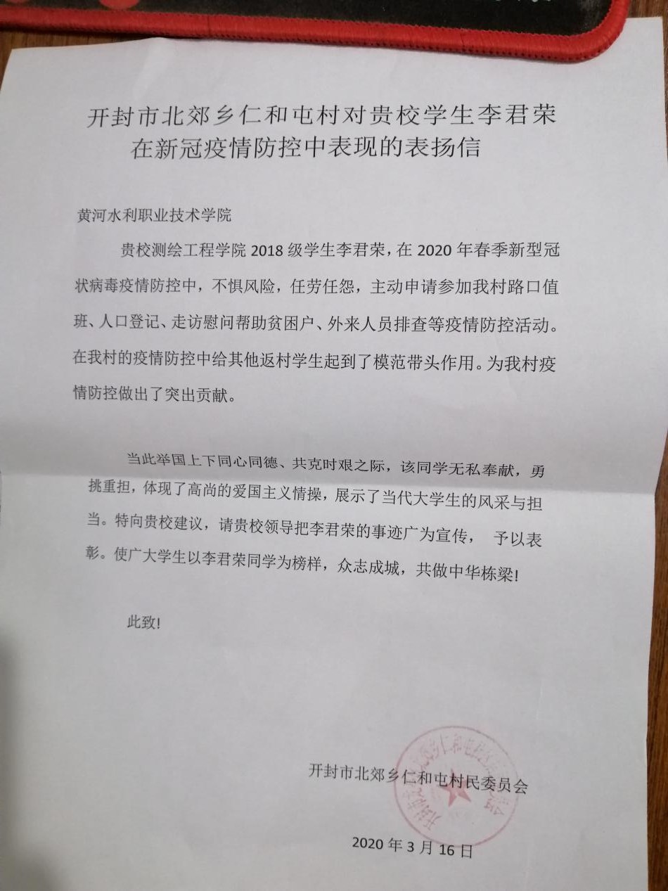 在学习上,勤学好问,尊敬师长,成绩一直在本专业的上游,2019年被评为黄河水利职业技术学院“文明学生”。此外,我认为实践也是学习的一部分,2019年被评为黄河水利职业技术学院“社会实践先进个人”。实习期间,遇到解决不了的问题我会虚心向老员工请教,公司交代的任务我也是一丝不苟,尽职尽责地完成;在政治上,我努力提高自身的政治觉悟,是入校提交入党申请书的第一批学生,并且每周都会进行党课的学习,最终成为了一名入党积极分子。虽然现在我还不是一名党员,但我每天都会学习、关注党的发展趋势,希望能够有一天真正成为一名党员。在疫情期间,我不惧风险,任劳任怨,主动申请参加我村路口值班等工作;在生活中,由于母亲常年患病,我和弟弟还在上学,父亲是家里唯一的顶梁柱,每天早出晚归,非常辛苦,所以我基本上每个寒暑假都会外出打工,通过打工赚取我的生活费用,减轻家里的负担,尽量做到不向家里索取。