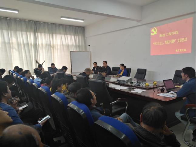 2017年10月24日,测绘工程学院教工支部全体党员召开支部大会,围绕着学习十九大精神的主题,开展了一次“学习十九大,共筑中国梦”支部活动。支部书记齐建伟主持了本次支部大会。