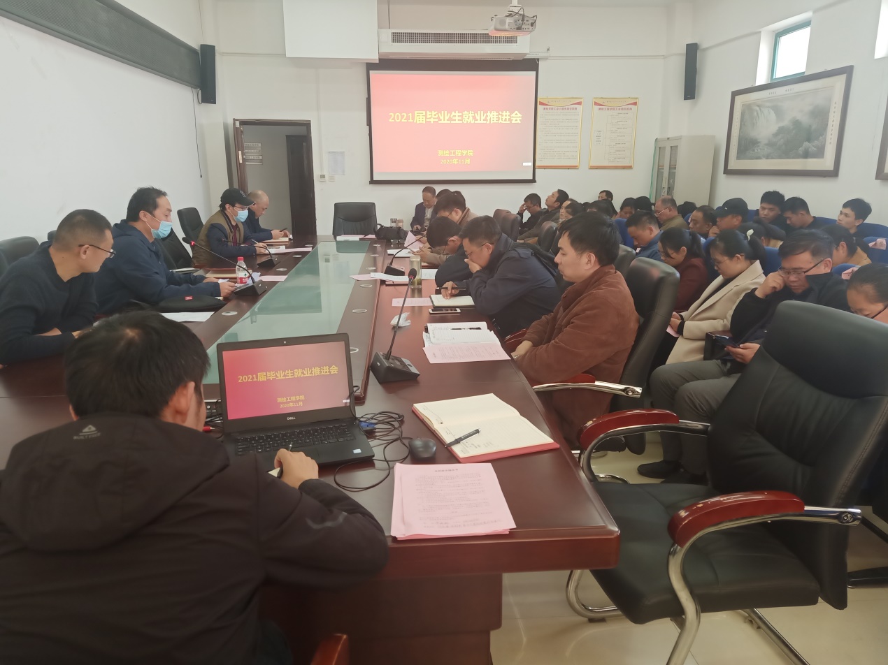 2020年11月12日下午,测绘工程学院在SY5434会议室组织召开了2021届就业推进会,学院领导班子、校企合作办公室、教研室主任、辅导员及班主任参加了会议。