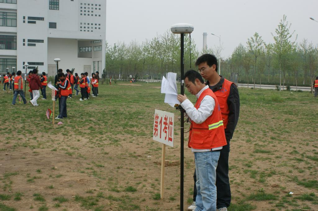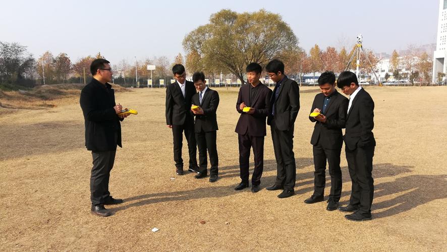 图13 学生在校内进行GNSS卫星定位测量实习与考核