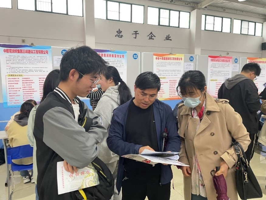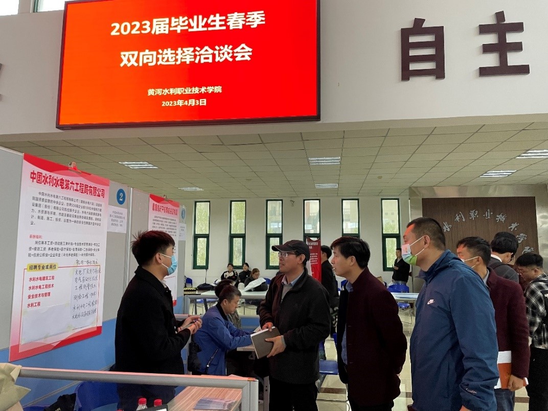 202343日上午,黄河水利职业技术学院2023届毕业生春季双向选择洽谈在学生活动中心顺利3楼顺利举办。学院党总支副书记彭战松、副院长何宽、校企办主任李洪超、分团委书记陈普智和各教研室教师、毕业班班主任以及就业辅导员亲临双选会现场指导2023届毕业生就业工作。