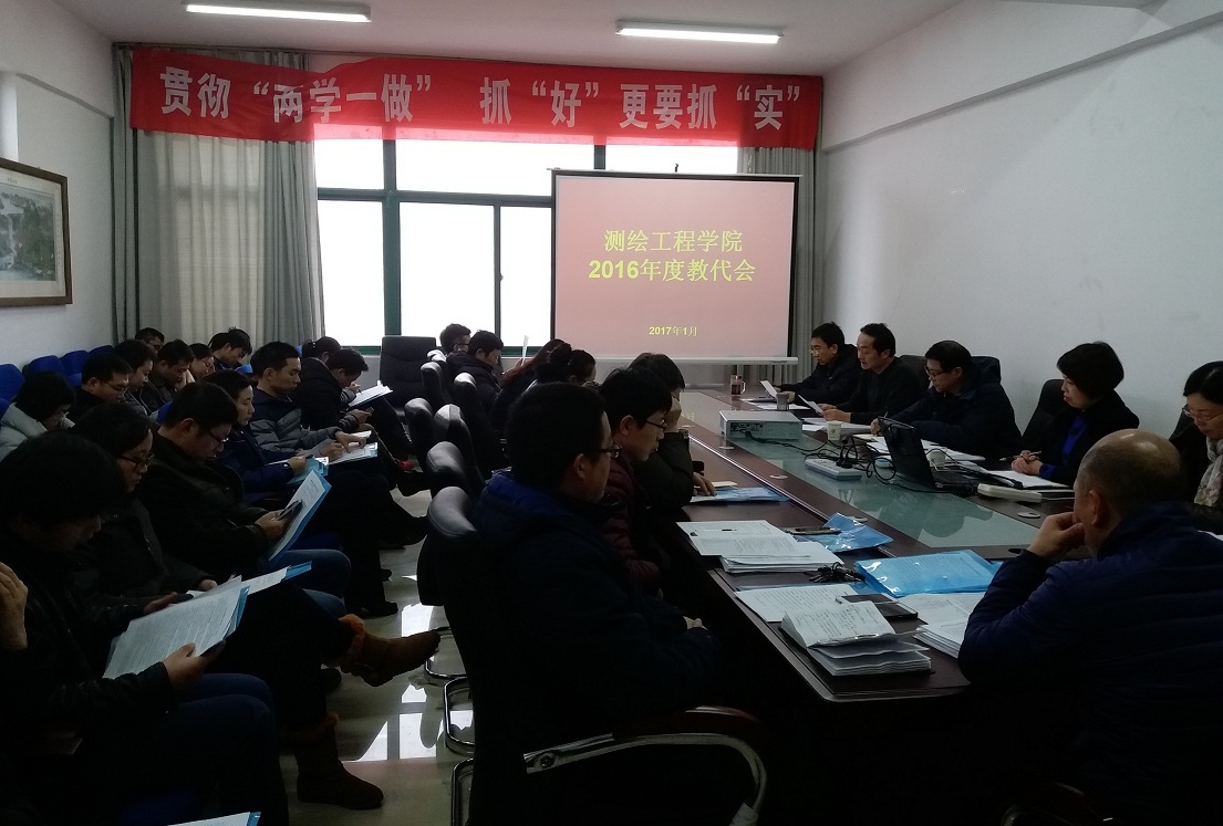 2017年1月9日下午14:30,测绘工程学院2016年度教代会在院会议室SY5434隆重召开。校党委副书记、工会主席王卫东,副校长焦爱萍应邀出席了大会。测绘工程学院全体教职工应到48人,实到43人,符合大会法定人数。大会由测绘学院书记纪勇主持。