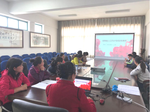 2018年4月24日,测绘工程学院分工会按照校工会女工委员会要求,以“加强生育保护依法维护女职工合法权益和特殊利益”为主题,组织女教职工共同学习了《女职工劳动保护特别规定》和《河南省人口与计划生育条例》,并进行了相关法律法规答题。