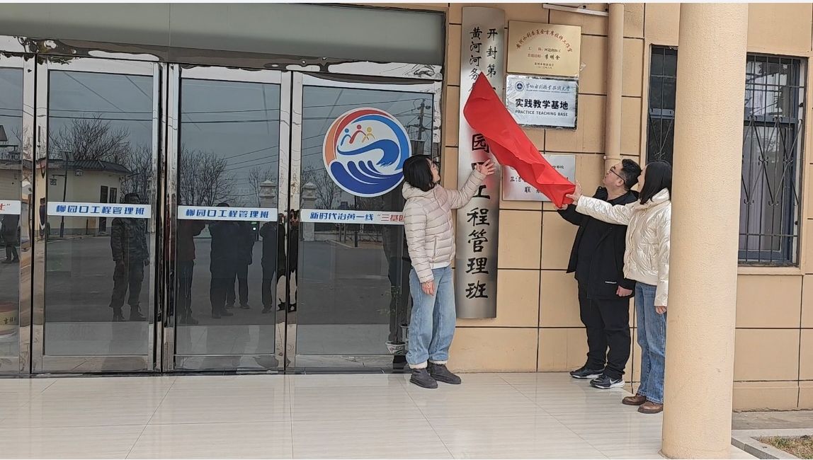 近日,我校与开封第一黄河河务局共建的测绘地理信息产教融合实践教学基地揭牌仪式在河务局柳园口工程管理班隆重举行,参加揭牌仪式的有我校教务处副处长李孝坤、开封第一黄河河务局副局长刘笑菡和测绘工程学院副院长孔令惠,水政监察大队大队长田国茂,测绘工程学院测绘工程技术教研室主任齐建伟、低空测绘与应用教研室主任郭志富、水利测绘专家许加东教授、河务局办公室主任丁鹏程等共同见证了这一重要时刻。这是校企双方立足黄河保护治理需求、深化水利行业产教融合的重要里程碑,更是我们践行“以水为媒、产教协同、知行合一”育人理念的生动实践。