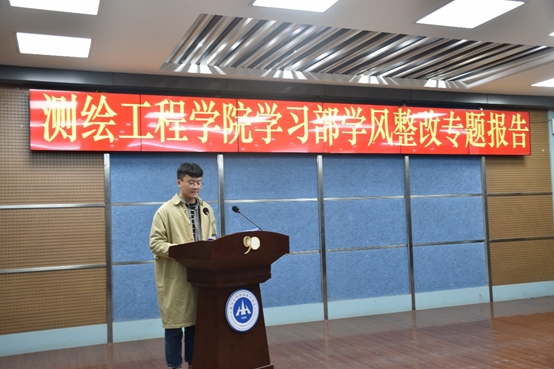 为促进我校学生的个人素养与自我成长,充分贯彻落实我院学风建设的要求,我院学生会学习部于11月13日晚在三号实训楼报告厅召开测绘工程学院学习部学风整改专题报告。测绘工程学院分团委书记陈普智、辅导员杜文志、牛晓航出席会议,学生会副主席刘文圆、学习部部长刘儒及学生代表参加会议。