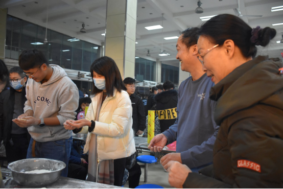 杨士恒副校长和焦爱萍副校长也加入我院的包饺子活动当中,手把手指导同学们包饺子的诀窍,深入同学之间和大家共庆传统佳节。大家经过不懈的努力,热气腾腾的饺子在大家的期待中被端上了餐桌,大家抢着吃新鲜出锅的饺子,一边吃一边交谈,讨论着哪个是领导们包的,气氛非常活跃。领导和老师们的和蔼亲切更为暖心,这样一个重要的节日里能抽出空留在学校陪伴学生们,与同学们一起动手包饺子,画面十分和谐令人难以忘怀。所有人融入一起实践活动,实实在在地让同学们感受到了共处一个大家庭的温暖。