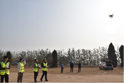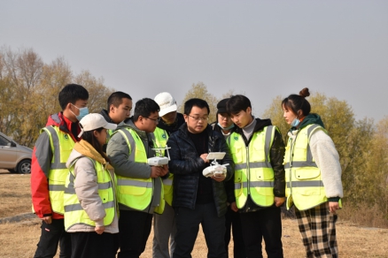 12月6日上午11点,我院副院长张丹,党总支副书记彭战松,陈普智老师和王懿老师带着20多名学生到黄河大堤黑岗口进行无人机实景三维测量。