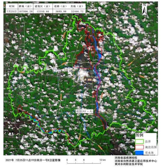 7月28日工作组接到尉氏县防汛支援请求,随即派出两个应急测绘保障小组,一组是遥感卫星应急测绘保障小组,主要负责与时空大数据产业学院合作单位河南省遥感测绘院协调调用高分一号遥感卫星数据,尽快完成尉氏县受灾区域卫星影像图;另一组是无人机应急测绘保障小组,师生5人奔赴尉氏县开展受灾区域无人机测绘,尽快完成受灾区域应急测绘任务。