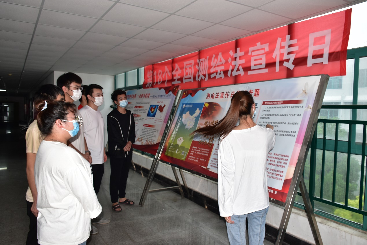 图2 学生观看测绘法宣传展板