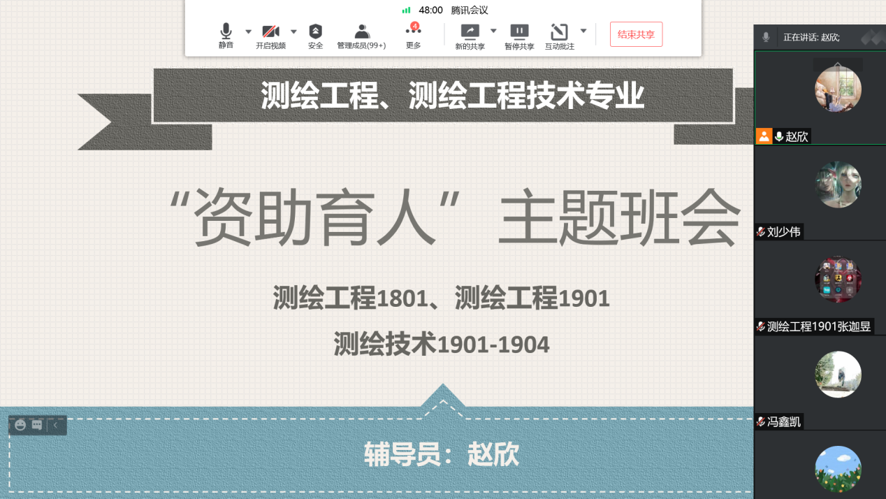 为加大教育资助政策宣传力度,普及家庭经济困难学生资助知识,使我校广大学生进一步深入了解国家教育资助政策,保证资助工作的顺利开展,9月27日,我院19级辅导员赵欣组织测绘工程、测绘工程技术专业学生开展“资助育人”主题班会。