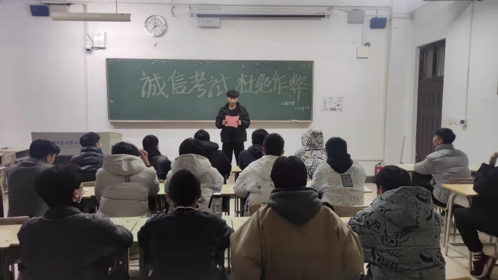 图1 学习委员宣读“诚信考试,杜绝作弊”倡议书