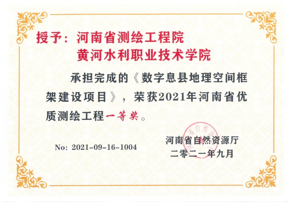 河南省测绘工程院是我院重点校企合作企业,合作时间20余年,在专业建设、课程建设、教材建设、教学团队建设、实训基地建设、技术服务等方面开展了深入的合作,取得良好的效果。我院将以此次获奖为契机,进一步深化校企合作、产教融合,提升人才培养质量和专业群服务区域经济建设的能力。