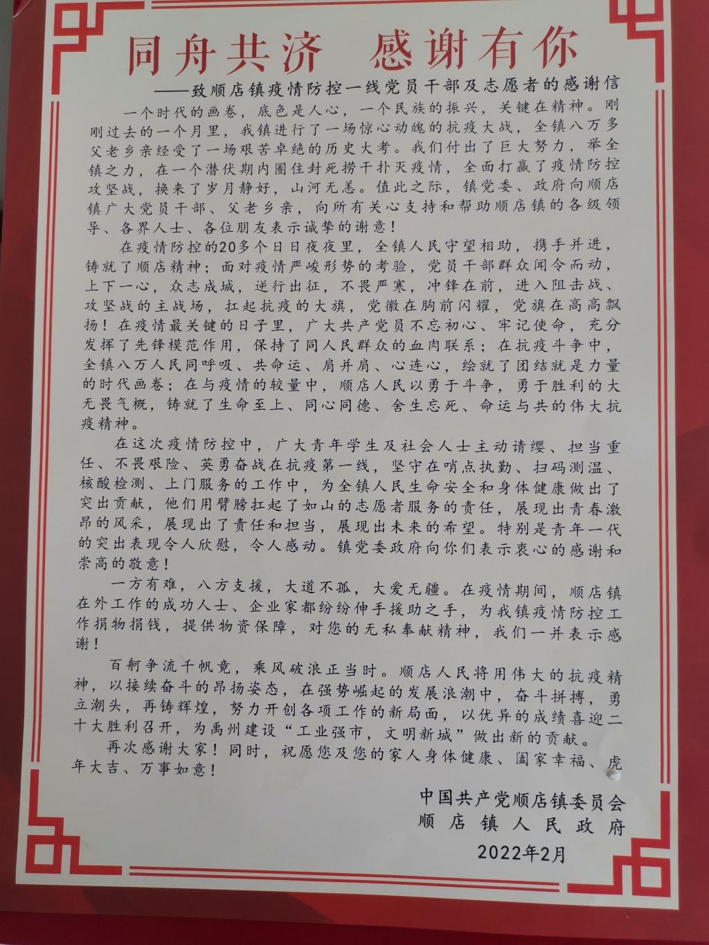 图4 丁明浩收到顺店镇人民政府的感谢信