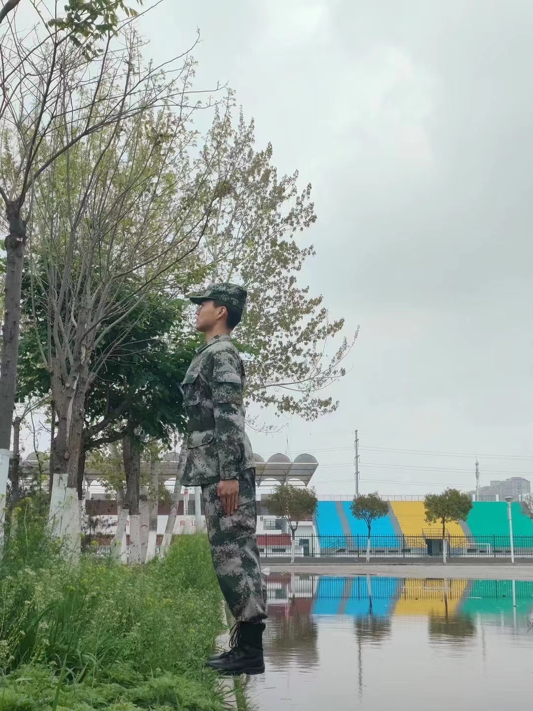 图1 丁明浩参加学校国旗护卫队军姿训练