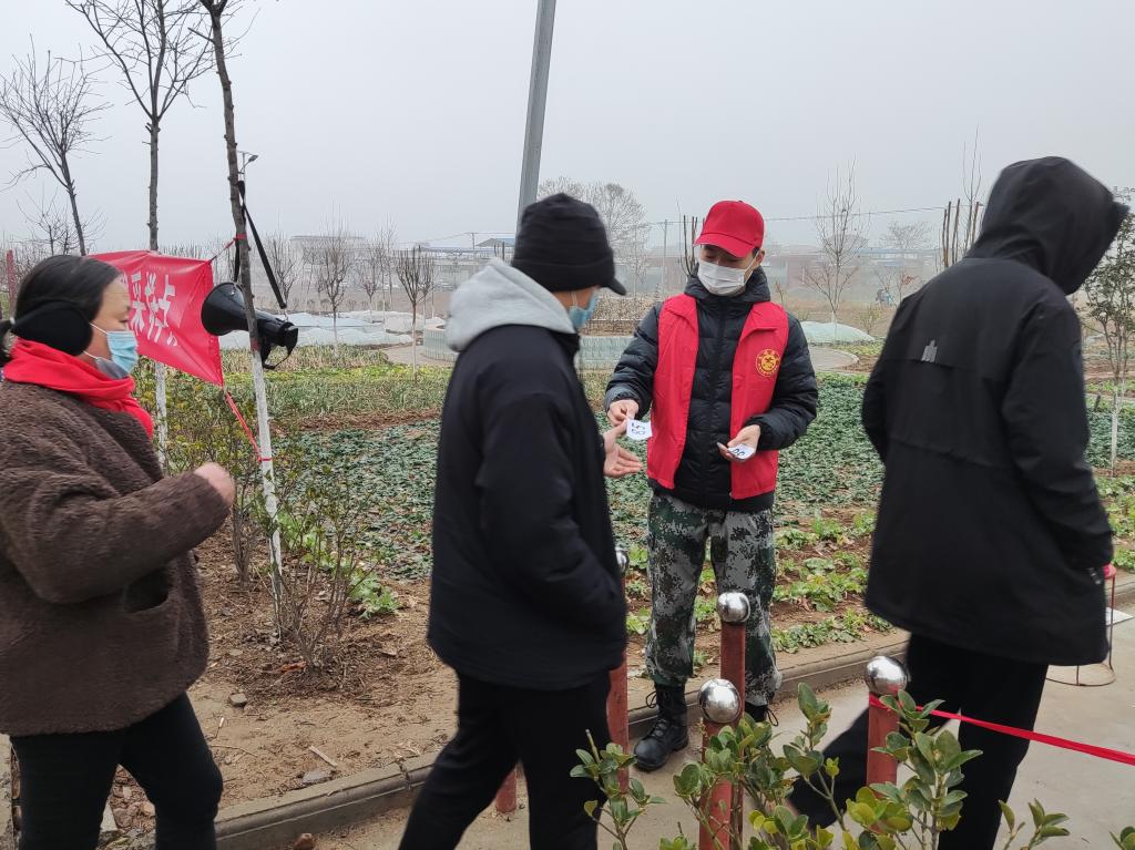 图2 丁明浩作为疫情防控志愿者为村民发放核酸检测号码牌