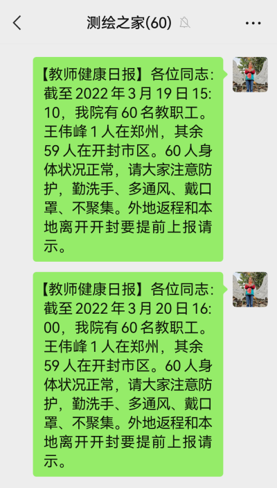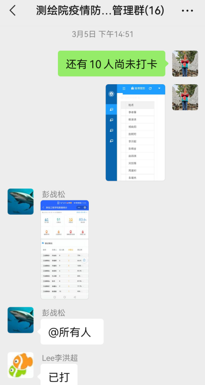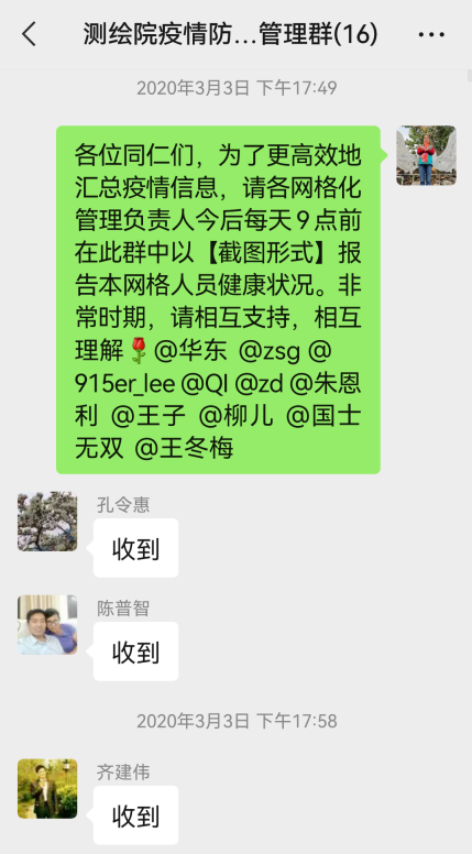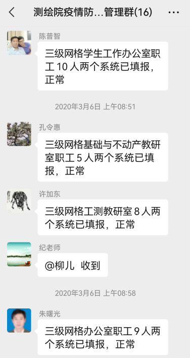 图1 教工支部通过“测绘院疫情防控网格化管理群”微信群每日督促打卡