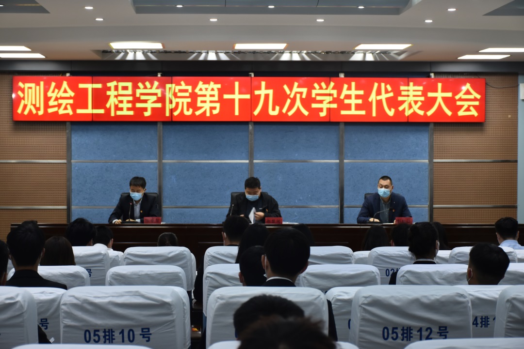 2022年4月19日,测绘工程学院第十九次学生代表大会在三号实训楼学术报告厅召开,同时在学院会议室SY5434设置分会场。本次会议通过线上线下相结合的方式进行,列席代表和十八届学生会成员通过线上参会。校团委副书记郝黎闻、测绘工程学院党总支副书记彭战松、测绘全体学工人员、十七届学生会常委代表等参与会议。会议由分团委书记陈普智主持。