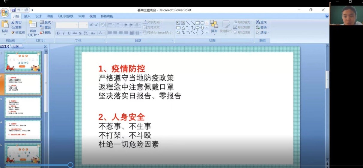 各位老师向同学们讲述了可能存在的安全隐患和突发事件处理常识,让同学们认识到在日常生活中防患于未然的重要性和生命的脆弱与可贵,及时为同学们敲响了安全的警钟!最后特别提醒同学们,疫情常态化背景下,大家要尽可能减少外出,不去人流密集的地方活动,尤其是晚上不要外出,注意人身、财产安全。