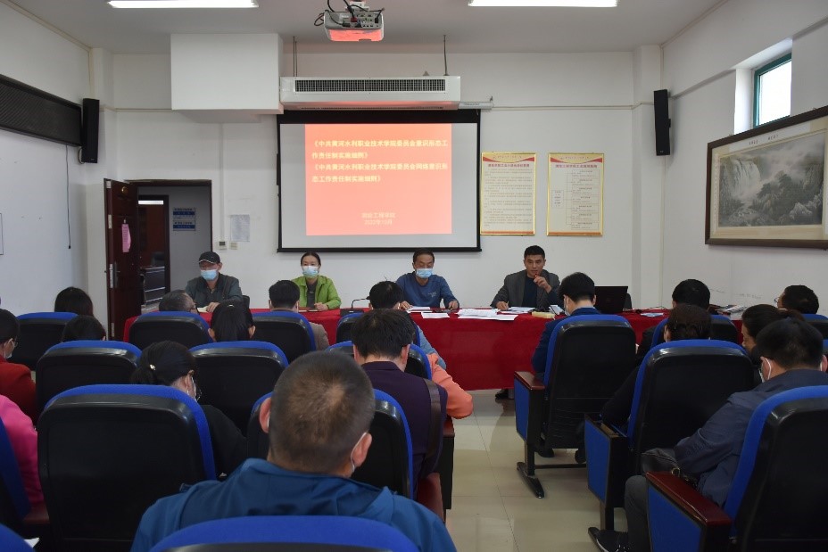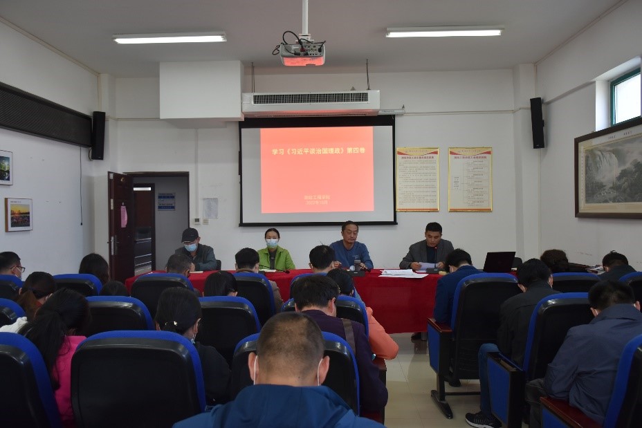 10月11日,测绘工程学院全体教师在学院会议室SY5434进行政治理论学习,学生测绘工程一支部书记李忠旺领学《中共黄河水利职业技术学院委员会意识形态工作责任制实施细则》《中共黄河水利职业技术学院委员会网络意识形态工作责任制实施细则》和《习近平谈治国理政》第四卷等相关内容。
