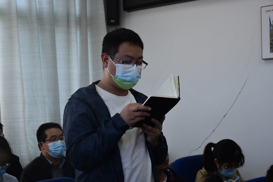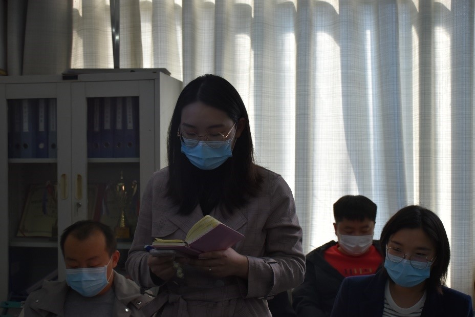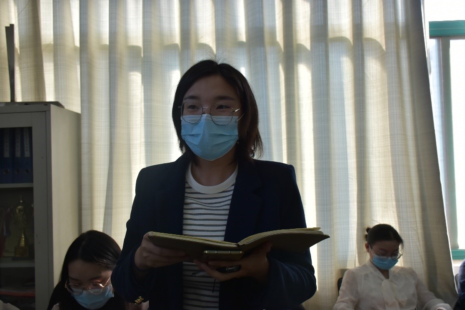 会议最后,教师代表唐光蕊、韩清清、王伟峰、王淼、牛晓航进行了现场发言,同时全体教师在学院微信群中交流学习心得,分享学习成果。全体教师表示将不断提高自身理论素养和思想觉悟,提高工作的原则性、系统性、预见性和创造性,切实把学习成效转化为奋进新征程、建功新时代的工作举措,以实际行动迎接党的二十大胜利召开!
