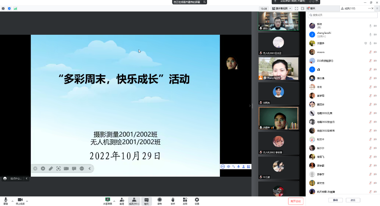 10月29日,测绘工程学院摄影测量教研室线上开展“多彩周末,快乐成长”主题活动,齐建伟、张辉、胡泊等老师针对毕业班学生的就业、升本及职业规划等问题进行专题讲解。会上邀请往届就业学生代表和专升本学生代表分享就业和升本经验,同时为促进本年度学生就业,特邀航天宏图郑州分公司孙晨曦经理进行企业介绍和招聘讲解,摄影测量及无人机测绘专业20级全体毕业生参会。