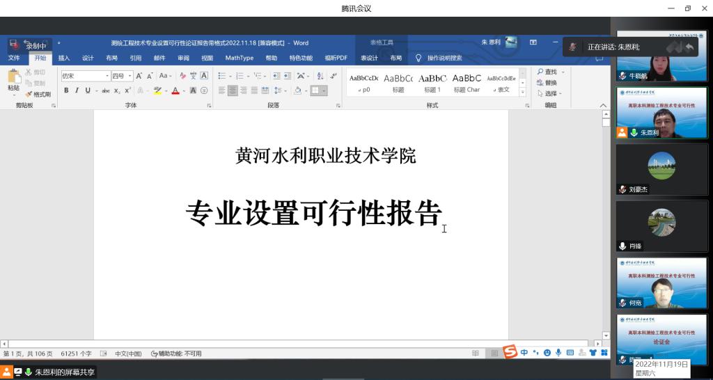 11月19日上午,我院通过腾讯会议召开了高职本科测绘工程技术专业可行性建设论证会。黄河勘测规划设计研究院有限公司副总工程师刘豪杰、河南理工大学测绘学院院长魏峰远、河南工程学院土木工程学院院长蒋瑞波、武汉大学测绘学院副院长邹进贵、河南省测绘工程院院长肖锋、河南省测绘地理信息中心处长武永斌、黄河水利职业技术学院科技处处长杨中华受邀担任评审专家。测绘工程学院院长陈琳、副院长何宽、教研室主任朱恩利及专业教师牛晓航参加了论证会。论证会由专家组组长刘豪杰主持。