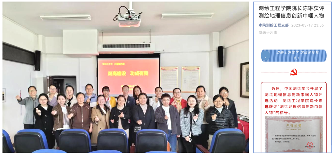 3月14日,我院女教职工深入开展学习党的二十大精神,学习身边优秀女教职工、测绘地理信息创新巾帼人物、院长陈琳,引领我院女教职工积极投身教育教学改革事业的故事,并号召大家凝心聚力,团结奋进,为我校“双高”建设和“十四五”规划推进实施贡献一份巾帼力量。