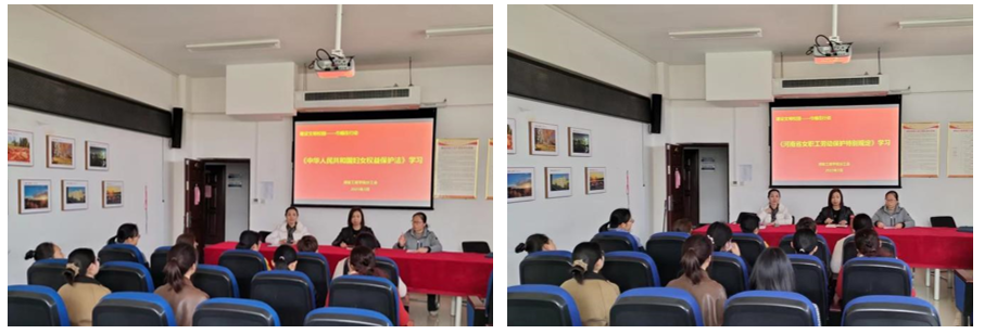 3月14日,我院女教职工在分工会女工委员王琴的带领下,以《中华人民共和国妇女权益保障法》《河南省女职工劳动保护特别规定》为重点内容,开展法律法规知识学习和女教职工劳动保护监督自查,提升了女教职工维权意识,为建设和谐文明校园做贡献。
