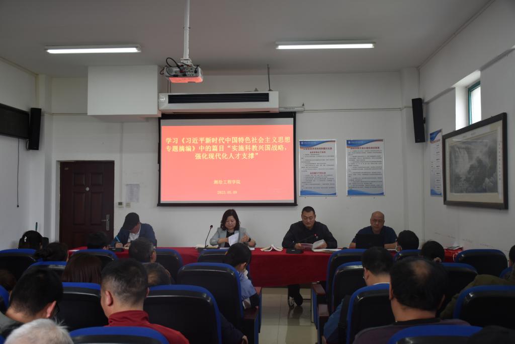 5月9日下午,测绘工程学院党总支组织学习了政治理论专题学习会,会议主题为《习近平新时代中国特色社会主义思想专题摘编》中的篇目“实施科教兴国战略,强化现代化建设人才支撑”,院全体教职工参加会议。会议由学院党总支副书记彭战松主持。