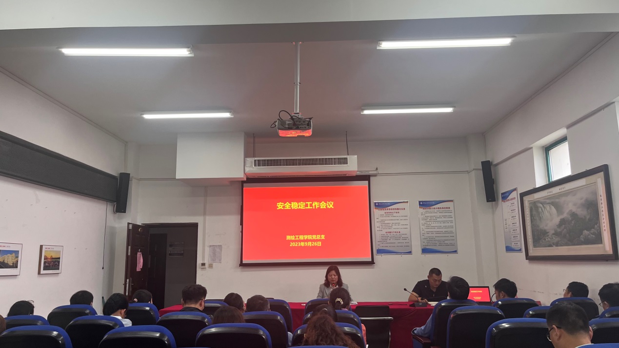 9月26日下午,测绘工程学院全体教职工在SY5434会议室召开安全稳定工作会议。会议由党总支书记高琼主持。