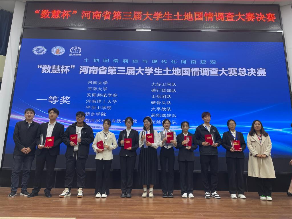 10月22日,由河南省自然资源厅指导,河南省土地学会主办,河南大学承办,河南数慧信息技术有限公司协办的“数慧杯”河南省第三届大学生土地国情调查大赛在河南大学金明校区隆重举行并圆满落幕,我院代表队荣获一等奖和优秀指导教师奖。