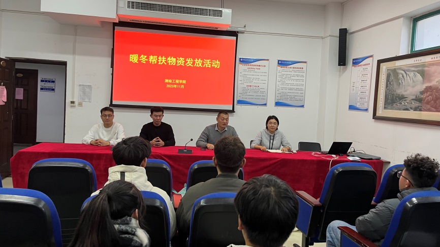 寒冬送温暖,情意暖人心。立冬之后,温度骤降,为了帮助同学解决生活中遇到的困难,抵御严寒,送去温暖,学校为家庭困难的学生购置一批棉衣、棉被,使其能温暖过冬。11月29日下午,测绘工程学院在学院会议室SY5434举行暖冬帮扶物资棉衣、棉被发放活动。测绘工程学院党总支副书记彭战松、辅导员和受资助困难生参加了此次发放仪式。