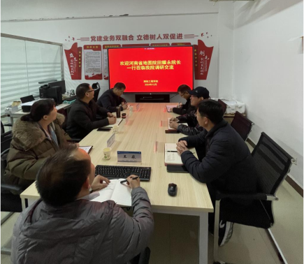 2024年12月9日,河南省地图院院长田耀永一行3人到我院调研交流。测绘工程学院院长何宽、副院长朱曙光、校企合作办负责人王淼、专业骨干教师陈旭参加了此次交流会。