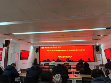 高琼详细传达了学校下发的《关于2025年元旦春节期间强化正风肃纪工作的通知》。她强调,一要提高思想认识,保持廉洁定力,党员领导干部要认真贯彻落实节俭文明廉洁过节的要求,立标杆、作表率;二要增强纪律意识,筑牢思想防线,自觉抵制各种形式的铺张浪费,大力弘扬节日新风;三要加强工作纪律,确保节假日安全有序,抓好安全生产工作,特别是安全用电、防火、防盗等安全事项,确保不出现任何事故,要始终保持昂扬向上的精神状态和清正廉洁的政治本色,在建功新时代中彰显担当、接续奋斗,开创学院各项事业新局面。
