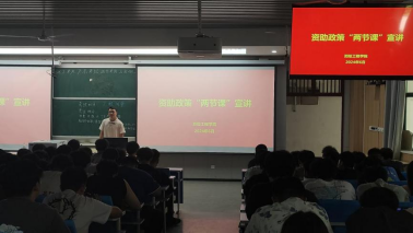刘志强为同学们讲解国家资助政策,高校贷款申请和还款流程等内容,激励同学们尤其是家庭经济困难学生自立自强、诚实守信、奋发成才。