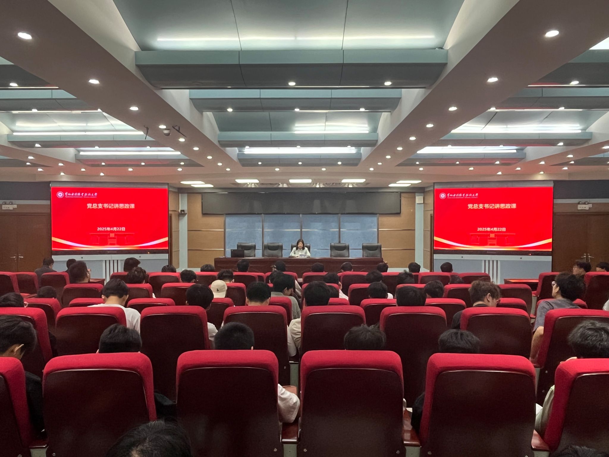 4月24日,测绘工程学院党总支书记高琼在3号实训楼会议室为200余名学生讲授思政课。