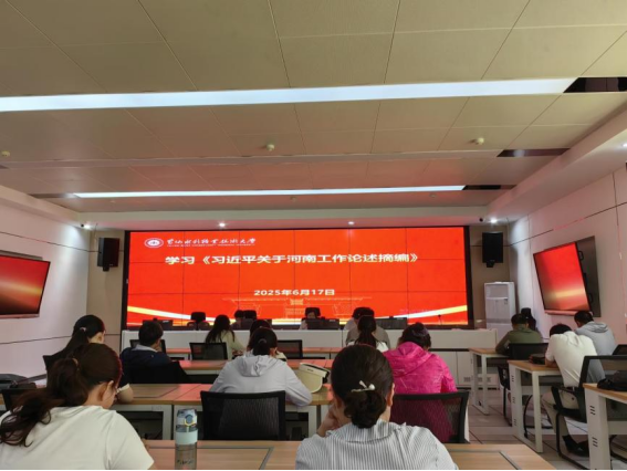 6月17日,测绘工程学院在SY8118组织开展集体政治理论学习,主要学习《习近平关于河南工作论述摘编》《中国共产党第二十届中央委员会第三次全体会议公报》《中共中央关于进一步全面深化改革、推进中国式现代化的决定》等内容。会议由党总支书记高琼主持。