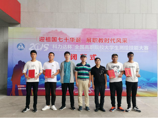 “科力达杯”2019年全国高职院校大学生测绘技能大赛于5月23日—27日在重庆工程职业技术学院隆重举行,我校参赛队团结协作、奋勇拼搏,在“1:500数字测图”项目获一等奖,“二等水准测量”项目获二等奖,并获团体二等奖。