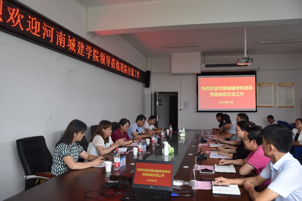 7月27日上午,河南城建学院院长张宏敏、副院长潘传姣、实验中心主任魏亮、教务办主任宋自影、党政办主任陈云生一行5人来我院交流指导工作。我院党总支书记纪勇、院长陈琳、副院长何宽等领导陪同调研。