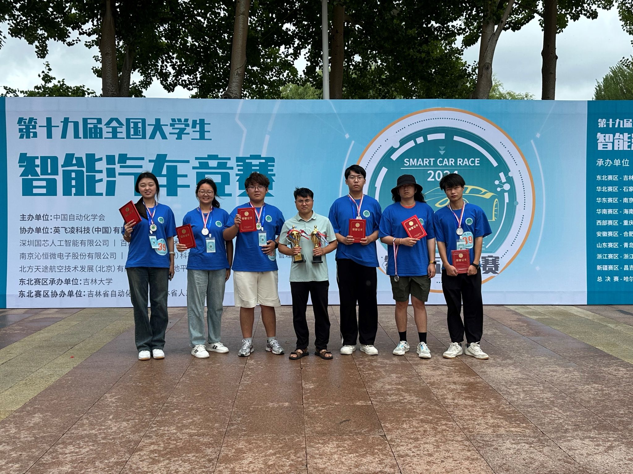 第十九届全国大学生智能汽车竞赛智慧巡检创意组赛项近期在吉林大学顺利落幕,我校测绘工程学院学生高族欣、侯森坤、石文延、葛宇杰、王甜、路宇畅和指导老师张辉、齐建伟组成的翼空绘地参赛队,经过预选赛和总决赛的激烈角逐获得全国一等奖。此次比赛参赛团队克服了各方面困难,积累了参赛经验,同时也与兄弟院校进行了交流学习。