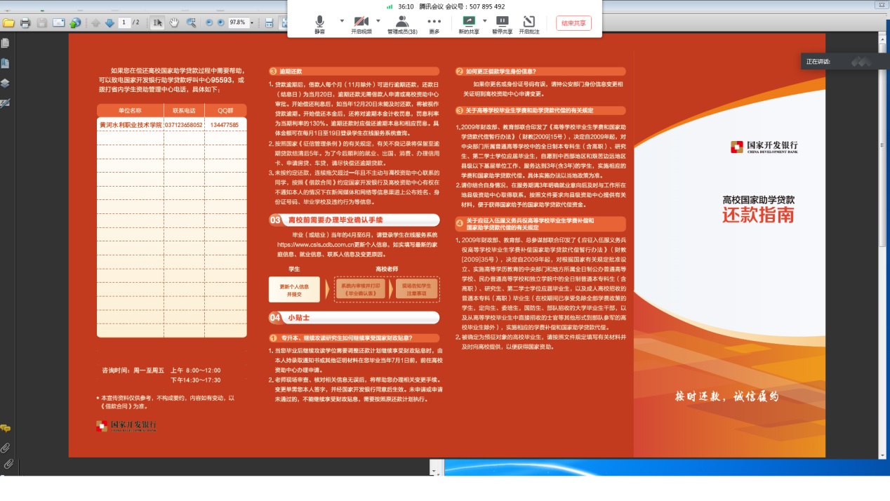 通过此次会议,学生们对国家高校贷款工作有了进一步的了解,在参与这项资助活动时,要严格约束自己的行为,将资助款项用到正确的地方,真正发挥其作用,贷款后也要按规定时间及时还款,避免自己的征信受到影响,对今后的学习、工作和生活造成困扰。