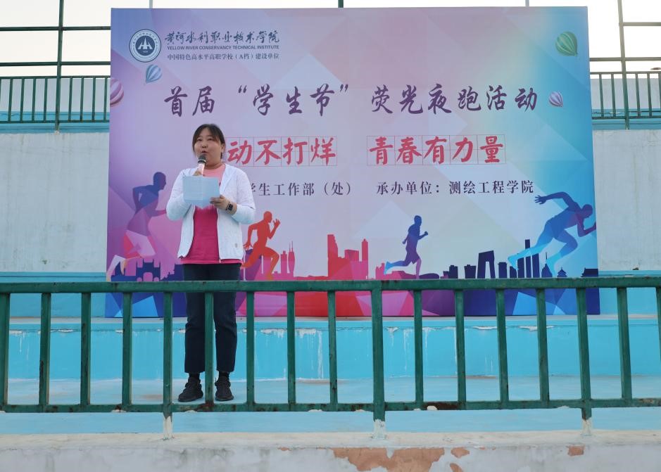 6月8日傍晚,由黄河水院学生处主办,测绘工程学院承办的首届“学生节”荧光夜跑活动顺利举行。学生工作处副处长牛钰、测绘工程学院党总支副书记彭战松和有关老师出席,牛钰处长为荧光夜跑活动致辞为活动致开幕词。