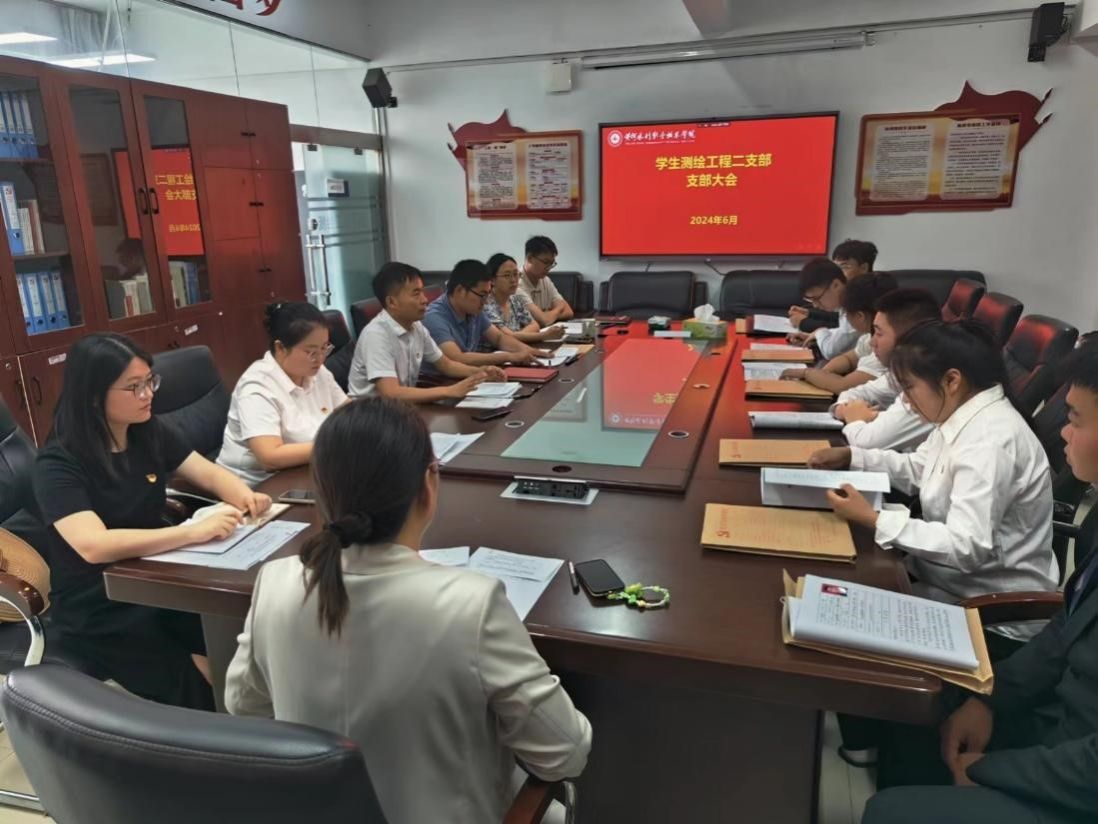 6月19日,测绘工程学院学生测绘工程二支部在党员活动室召开支部大会。会议由支部书记陈普智主持,支部全体党员、预备党员、发展对象参会。
