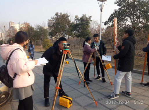 2017年12月,地信1701/02/03班进行了为期3周的水准、导线测量实习,该实习是《地形测量》课程教学的重要组成部分,是巩固和深化课程知识的必要的环节。通过实习培养学生实际动手操作能力,提高理论联系实际、分析问题和解决问题的能力,使学生具有严格认真的科学态度、实事求是的工作作风、吃苦耐劳的劳动态度以及团结协作的集体观念。同时,也使学生在业务组织能力和实际工作能力等方面得到锻炼,为今后从事测绘工作打下良好基础。