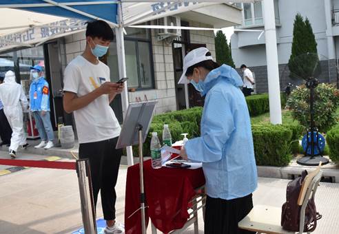 在学生报到处,老师认真核对同学们返校前和返校过程中的各种信息,为同学们办理入校手续,并发放入校防疫礼包,以保证同学们在校期间的防疫安全。