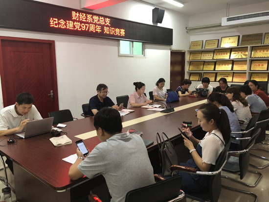 为迎接党的97岁生日,进一步增强支部党员对党建知识的学习热情,保持党员先进性,7月3日下午5点,财经系党总支于SY5412开展庆祝建党97周年党课知识竞赛活动。系全体教工党员参加了此次活动,活动由教工党支部书记苏永彪主持。