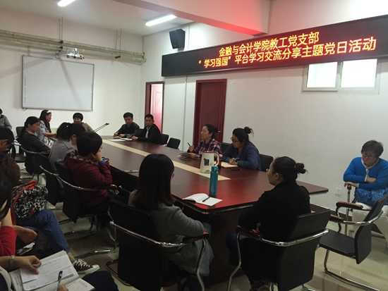 2019年4月30日下午,金融与会计学院教工党支部在党员会议室SY5412开展了“学习强国”平台学习交流分享主题党日活动,全体教师党员教师参加。活动由院党总支书记殷莺主持。
