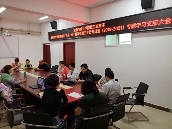 2019年5月28日下午,金融与会计学院教工党支部在SY5412党员会议室召开《全省高校党支部建设“两化一创”强基引领三年行动计划(2019-2021)》专题学习会,全体教工党员参加。会议由教工党支部书记苏永彪主持。